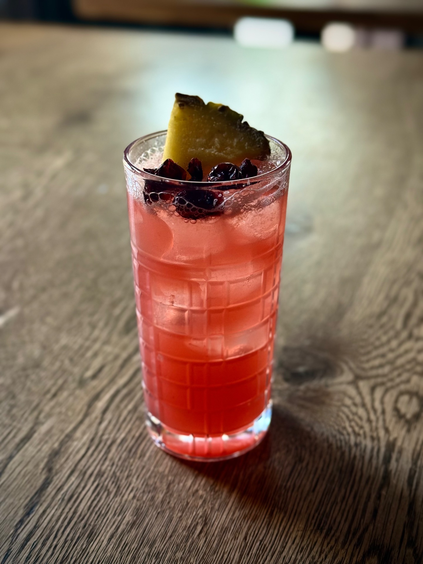Don Papa Baroko rum, cranberry juice, lime, pineapple juice, almond