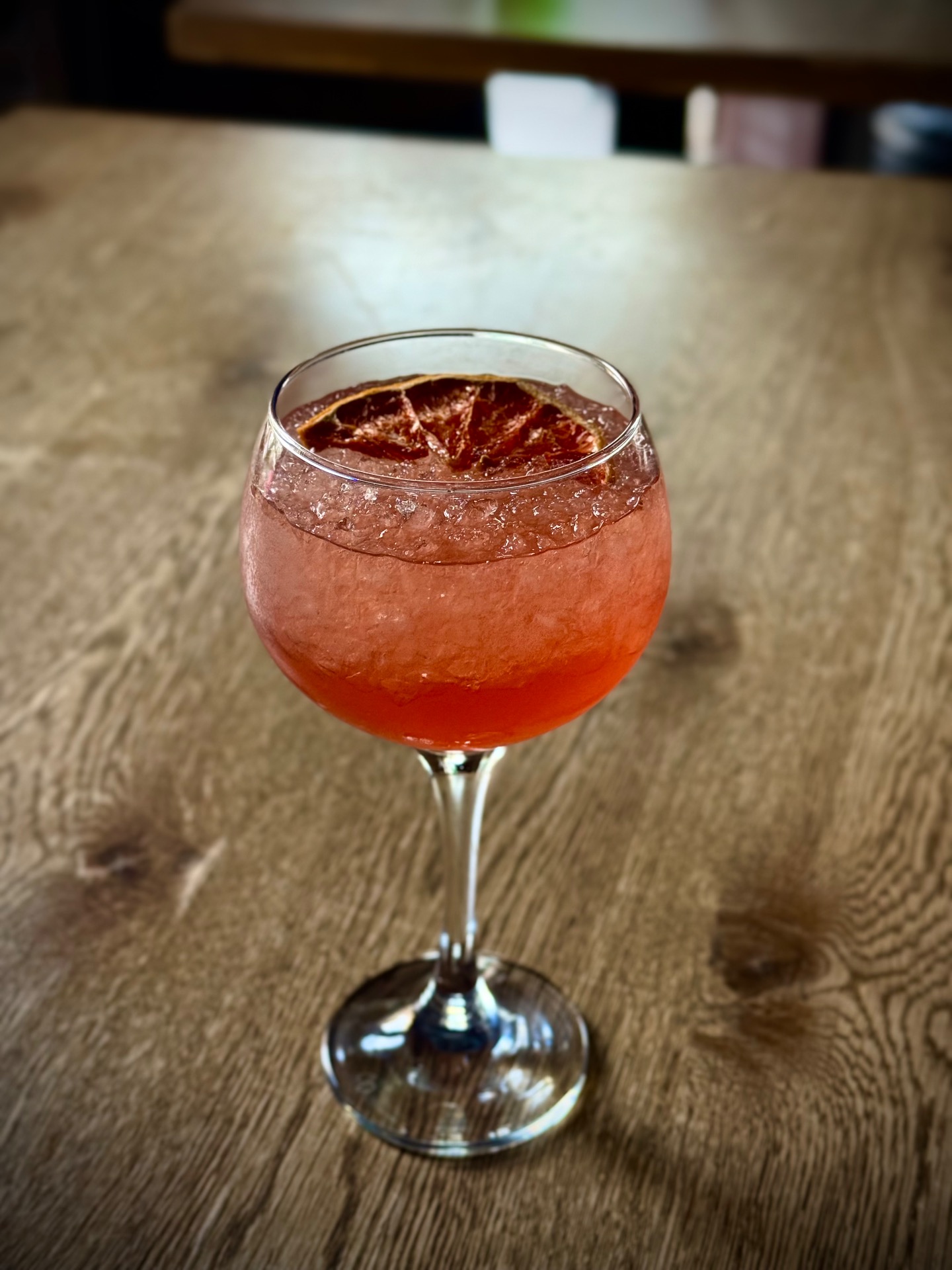 Skyy vodka, Aperol, grapefruit juice, elderflower sirup, Raspberry & Rhubarb tonic