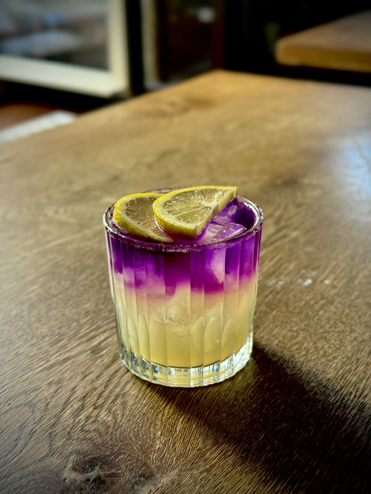 El Jimador tequila - infused by Clitoria Ternatea, simple sirup, triple sec., lemon
