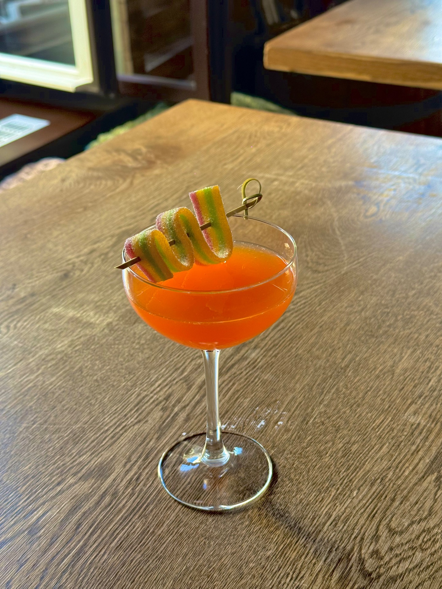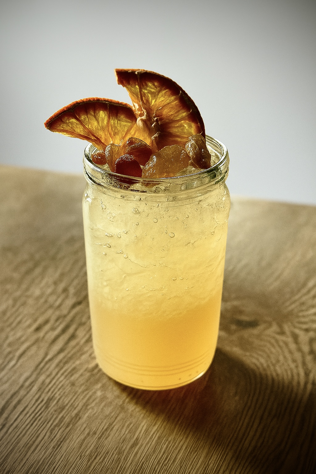 Skyy vodka, triple sec. orange liker, lemon, Granny Smith apple puree, dried apple