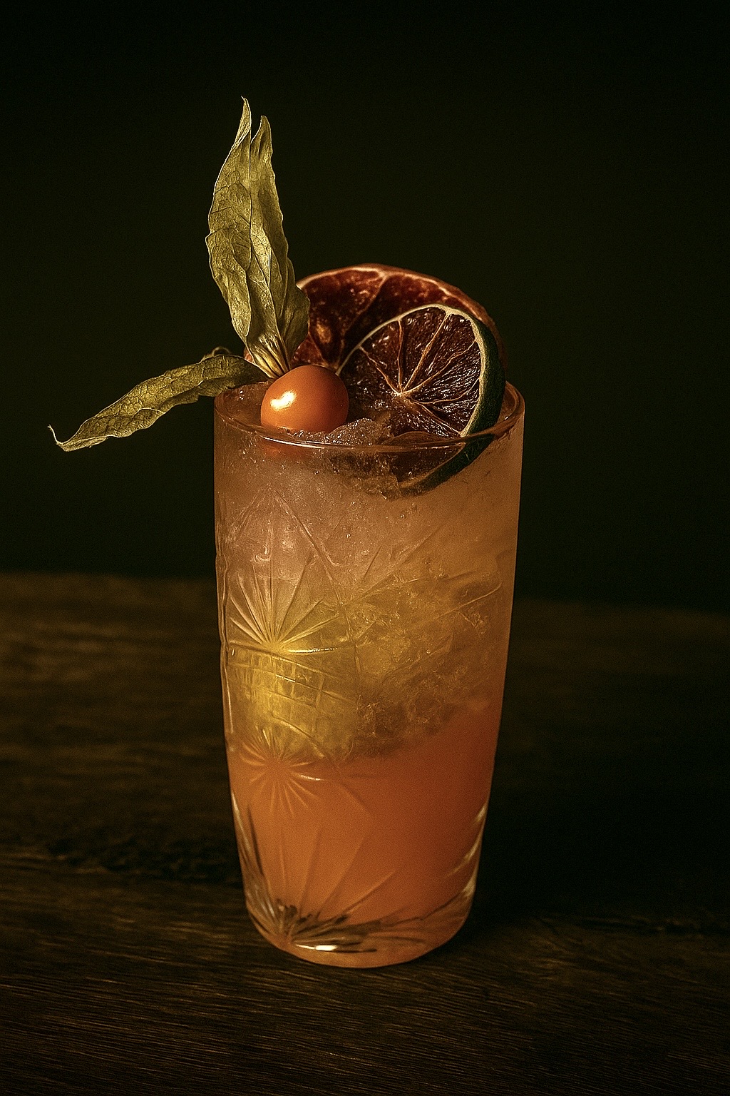 Malfy Pink Grapefruit, lime, cherry liqueur, simple sirup, cherry bitters, ginger beer